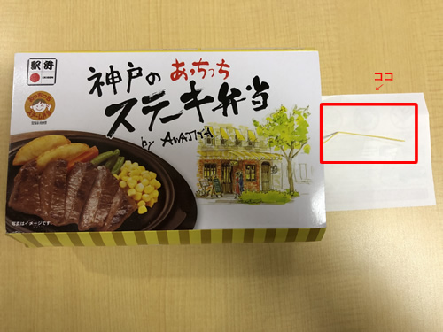 『神戸のステーキ弁当 あっちっち弁当』淡路屋の駅弁は黄色の紐を引っ張ると熱くなるのが不思議です
