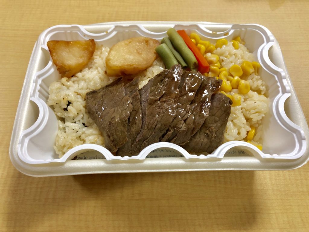 あっ、今気がつきましたけど、加熱容器でない『神戸のステーキ弁当』は100円お安くなっているんですね。