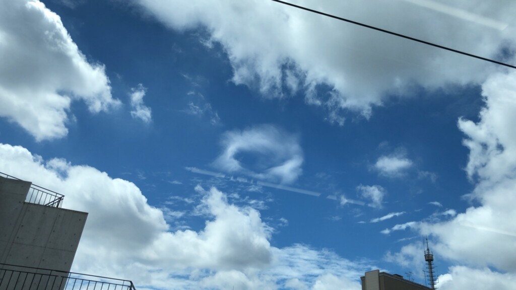 昨日、電車内から空を見上げていたら、不思議な雲を発見しました!!