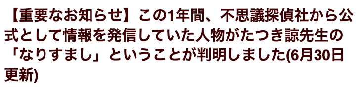 たつき諒先生は、自分を名乗る者がTwitterをしていることや、不思議探偵社さんを公式HPだと言っていることをご存知なかったのでしょうかね。