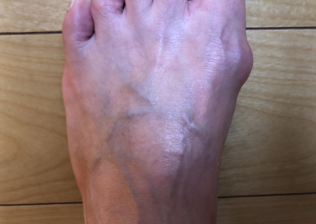 写真を見てお分かりのように、明らかに左足のほうがポッコリと骨が出ています。