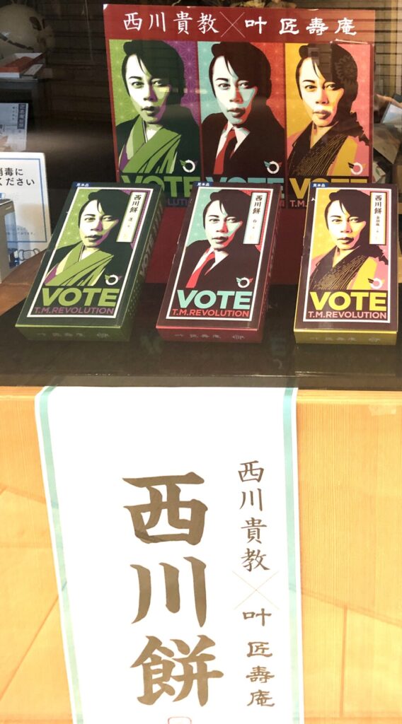最初見た時、お菓子屋さんとは気付かず、西川貴教さんのグッズが売っているのかなと思ったのです。
