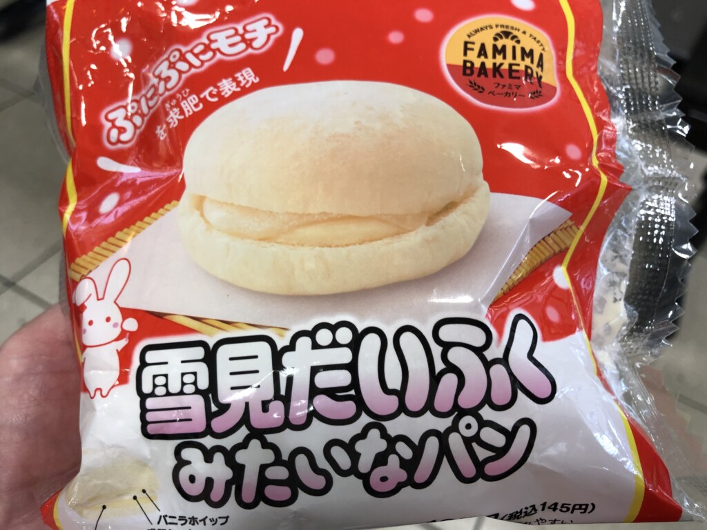 寝台特急に乗っていて小腹が空くかなと買った『雪見だいふくみたいなパン』。