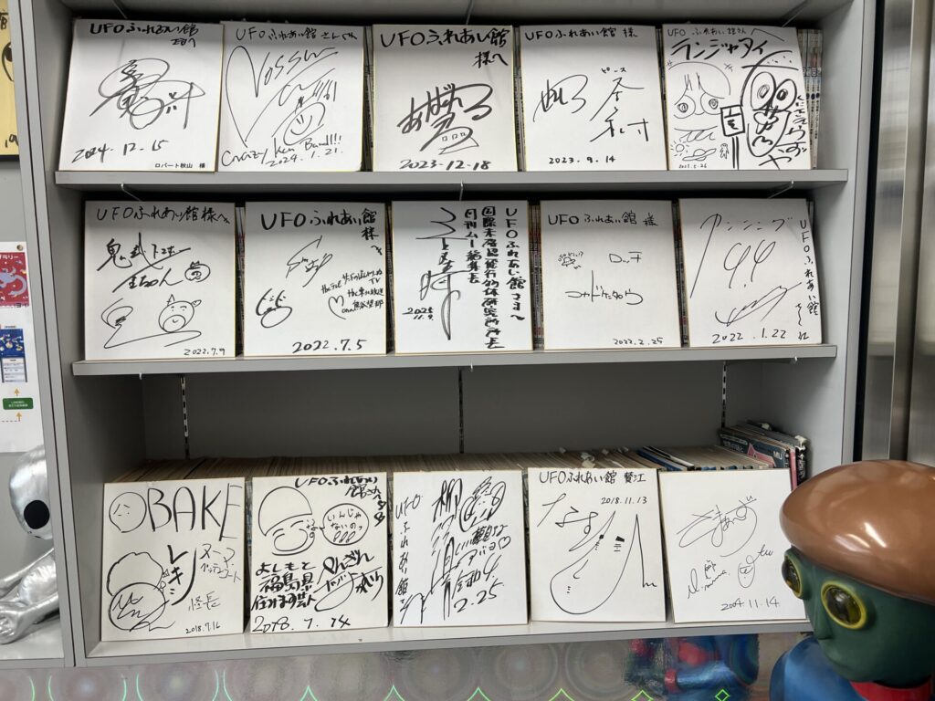 『UFOふれあい館』に訪れた有名人のサインも飾ってありました〜