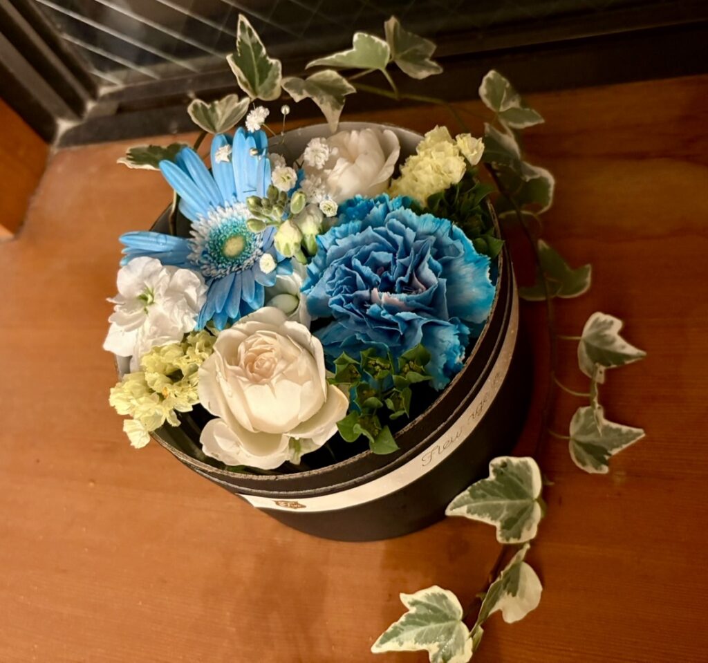 青い花のフラワーギフトを次女に贈ってみようかなと購入してみました!!!