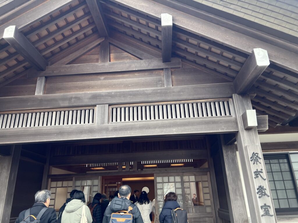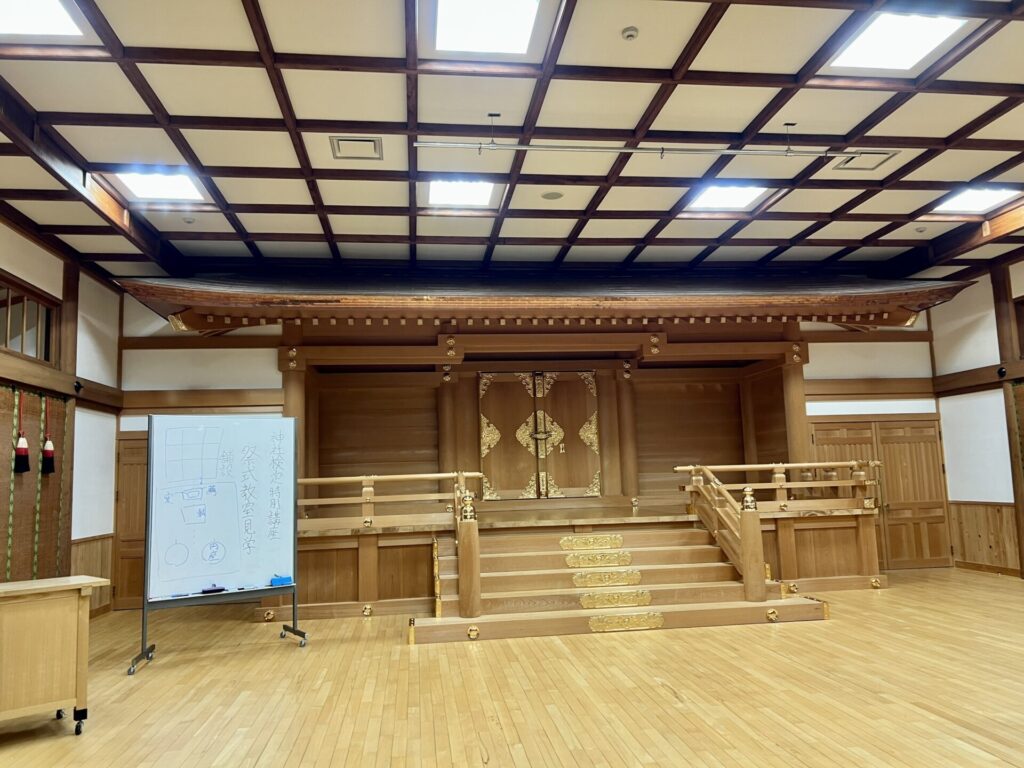 祭式教室へ移動し、神職の作法を学び神社祭式の実践の場である祭式教室を特別見学させていただきました。