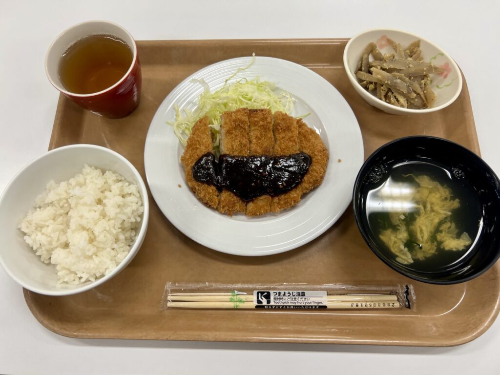 学食で味噌カツのお昼をいただきました〜!!!